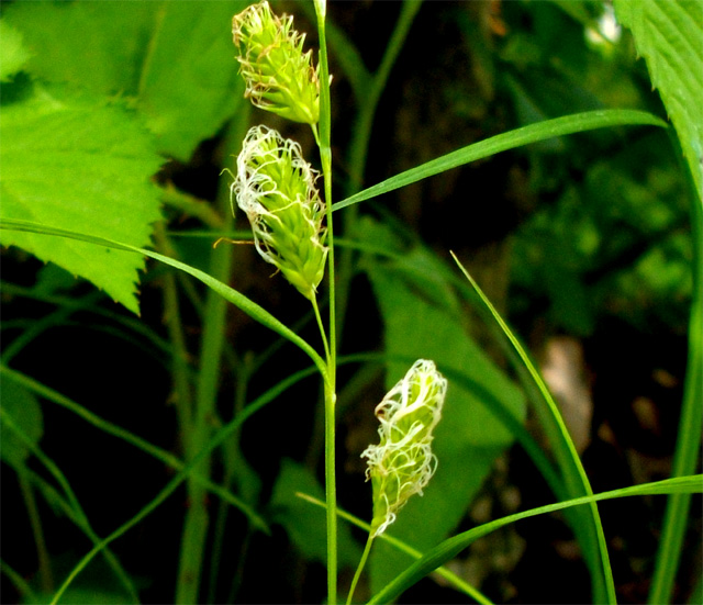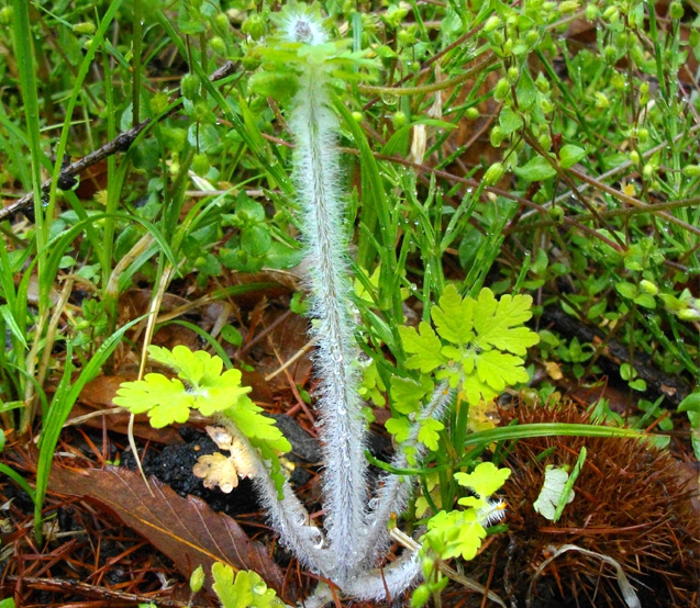 雨の草むらの中に、全身「コップ洗いブラシ」のような植物を見つけました。