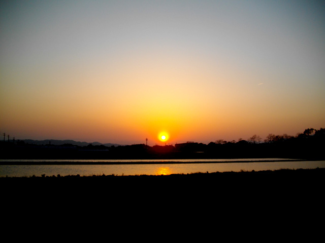 もう少しで夕陽が山並みに姿を隠します