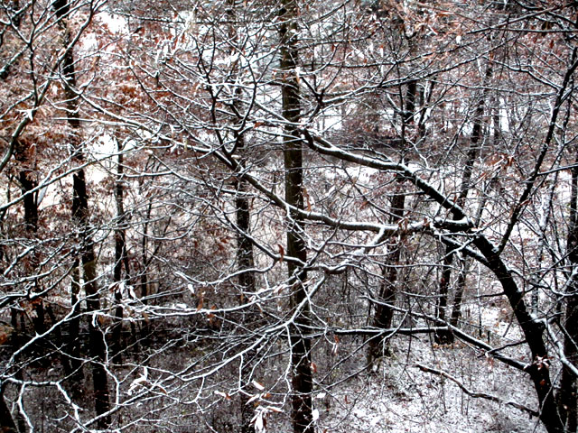 冬の夜明けです。大きく見える太陽をバックに、木々も思いっきり体を伸ばしているように見えます。