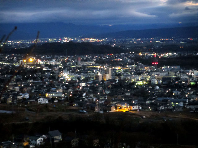 小雪が舞った朝の小諸です。うっすらですが街も丘も雪化粧をしてます。