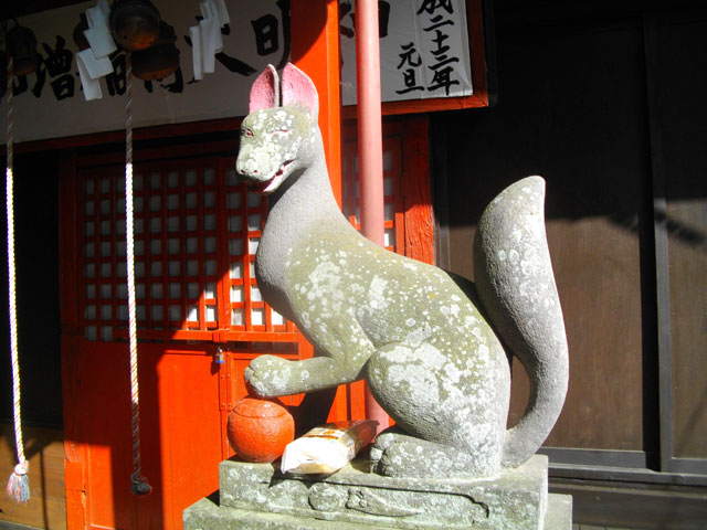 加増稲荷神社さんの狐さん(向かって右側)。ちょっと恐そう...。足元に宝珠(鞠かな?)です。