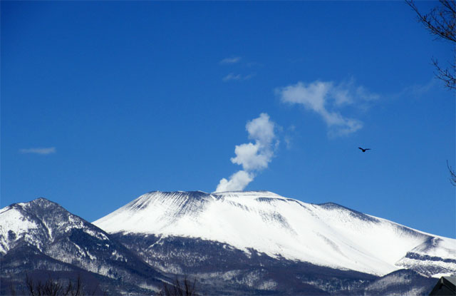 真っ白な浅間山。ほんとうに白い純白の雪が山を覆います