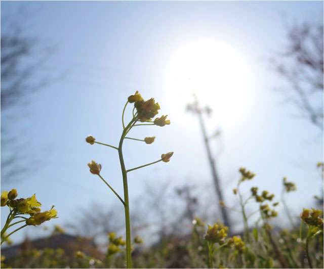 やっと花をつけた小枝。そこにキッラと真珠の輝き